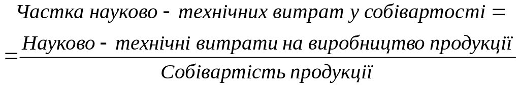 - частка науково-технічних витрат у собівартості продукції відображає рівень технологічного розвитку підприємства:
