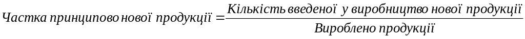- частка принципово нової (або такої, що зазнала суттєвих технологічних змін) продукції у загальному обсязі виробленої товарної продукції свідчить про рівень технічного розвитку підприємства і визначається за формулою: