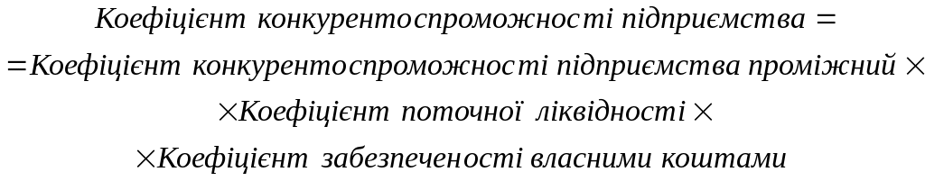 Таким чином, кінцева формула обчислення коефіцієнту конкурентоспроможності підприємства має вигляд: