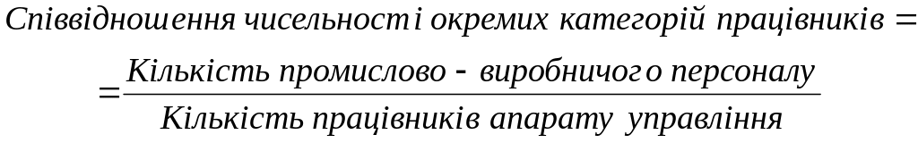 - співвідношення чисельності окремих категорій працівників визначається за формулою: