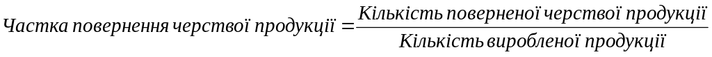 1) коефіцієнт виробничого браку; 2) коефіцієнт експедиційного браку; 3) коефіцієнт реалізованих відходів; 4) частка повернення черствої продукції |