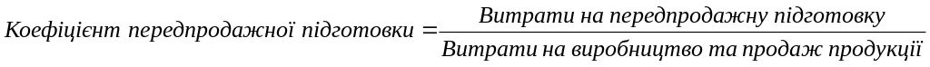 У випадку, якщо продукція не вимагає передпродажної підготовки у звітному періоді, то даний показник дорівнює одиниці.