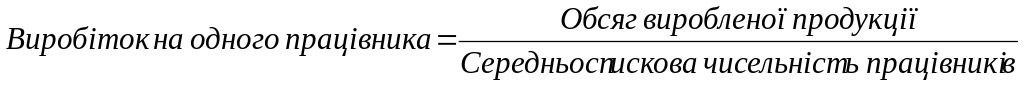 - зміна виробітку на одного працівника. Виробіток визначається за формулою: