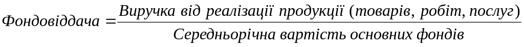 - фондовіддача. Даний показник відноситься до загальних показників визначення ефективності використання основних виробничих фондів і визначається за формулою: