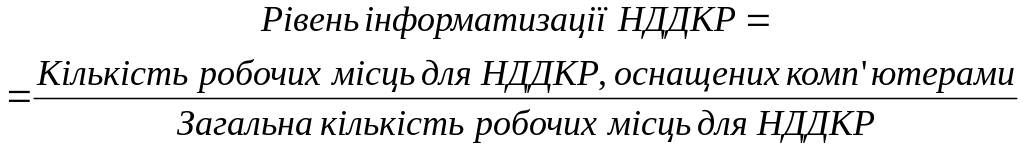 - рівень інформатизації робіт, пов’язаних з науково-дослідними та дослідно-конструкторськими роботами відображає наявність у підприємства персональних комп’ютерів, ноутбуків та іншої комп’ютерної техніки, необхідної для проведення НДДКР: