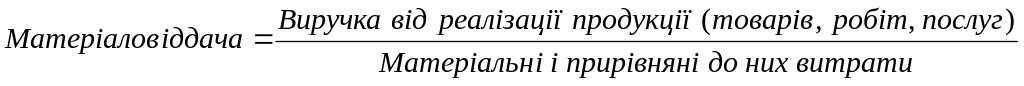 - матеріаловіддача. Даний показник визначається як відношення виручки від реалізації продукції до матеріальних і прирівняних до них витрат в собівартості продукції: