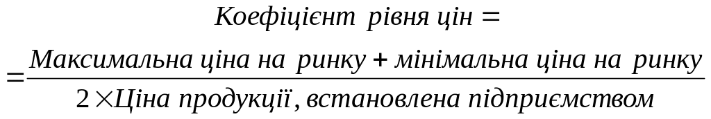 2) конкурентоспроможність по ціні визначається за допомогою коефіцієнту рівня цін, який відображає ріст або зниження конкурентоспроможності підприємства за рахунок зміни цін на продукцію: