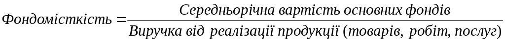 - фондомісткість є загальним показником, оберненим до фондовіддачі і визначається за формулою: