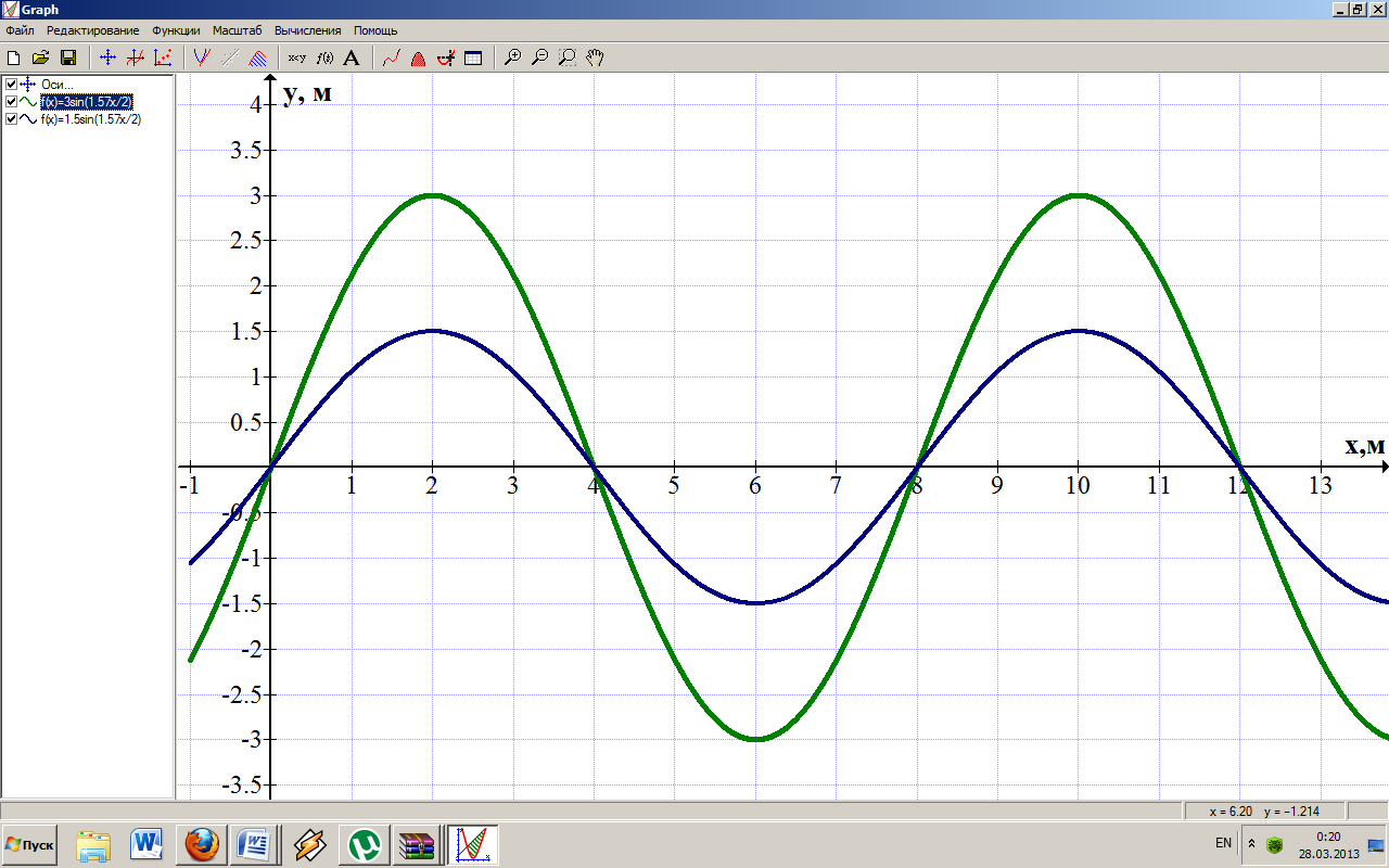 - •Графикте таралу жылдамдықтары бірдей және 2 м/с-қа тең болатын екі когерентті толқын көрсетілген.