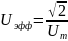 амплитудалық мәнінен есе аз.