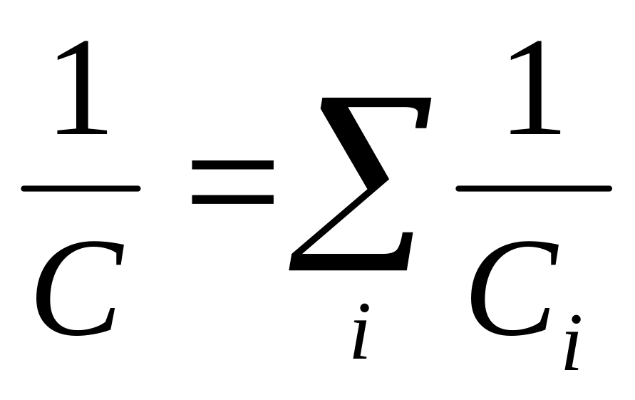 т.е. при последовательном соединении складываются величины, обратные ёмкостям. При этом ёмкость батареи конденсаторов всегда меньше ёмкости каждого из них, однако, распределение напряжения по отдельным конденсаторам позволяет использовать такую батарею в высоковольтных цепях.