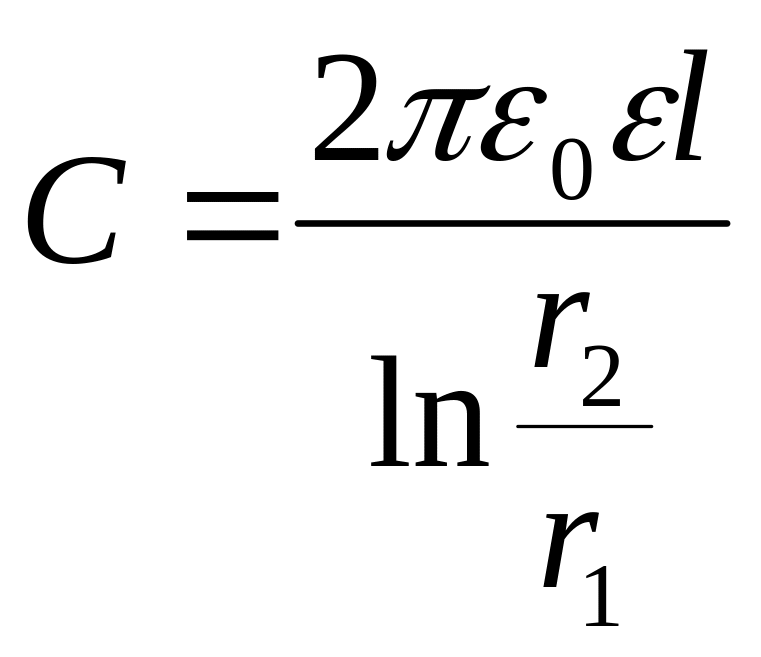 Подставив (13.8) в (13.3) и произведя замену Q=l, получим выражение для ёмкости цилиндрического конденсатора:
