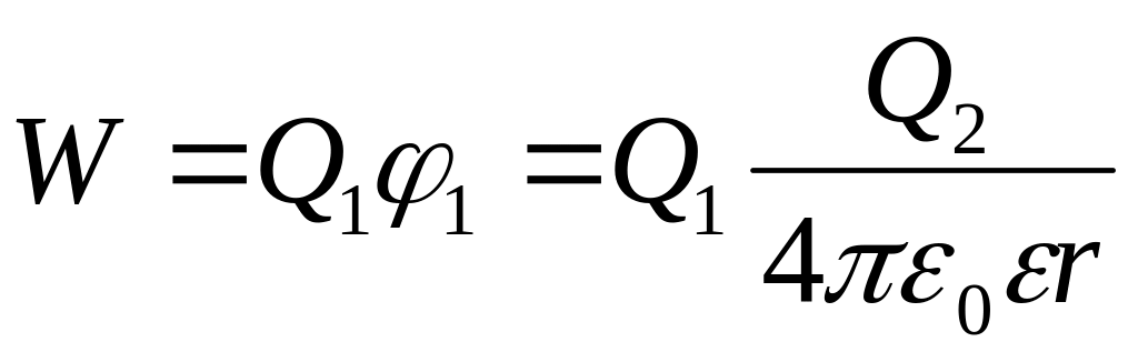Однако эту же энергию можно представить как произведение заряда Q2 на потенциал поля 2, создаваемого зарядом Q1 в точке, где находится второй заряд Q2: