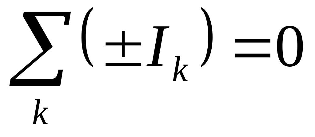 Узлом называется точка цепи, где пересекаются три и более проводников. Ток берется со знаком "+", если он входит в узел; выходящий из узла ток берется со знаком "-".