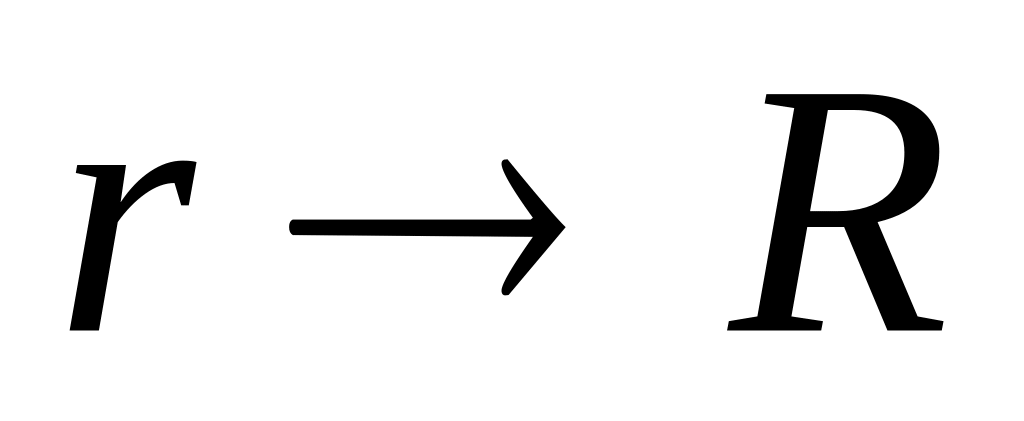 возрастает до значения R.