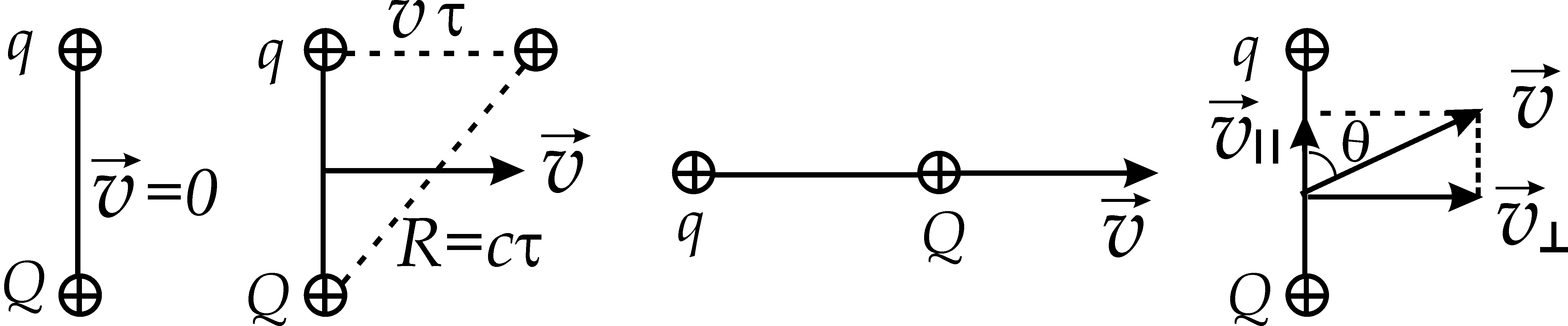 Продолжим рассмотрение рис. 17.1, б. Пока "сигнал" от заряда Q распространяется к заряду q, последний успеет сместиться на некоторое расстояние v и окажется в точке A. Таким образом, заряд "почувствует" заряд Q не на расстоянии r, а на расстоянии R=c. Очевидно,