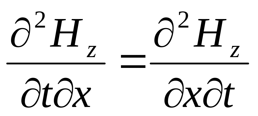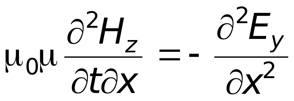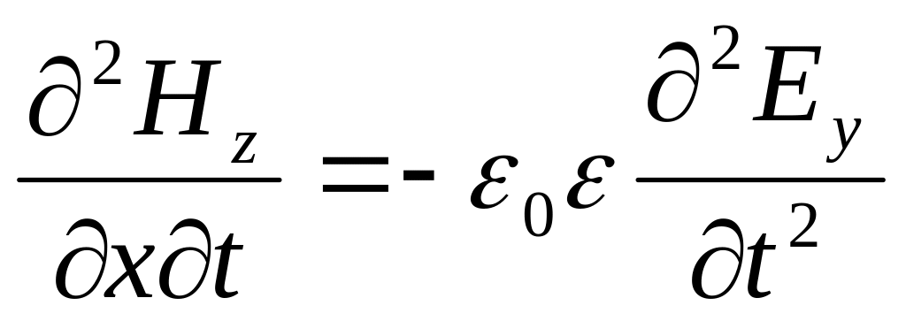 Теперь, чтобы найти зависимость изменений электрического поля в пространстве от его же изменений во времени, продифференцируем (24.6) и (24.7) соответственно по координате и времени: