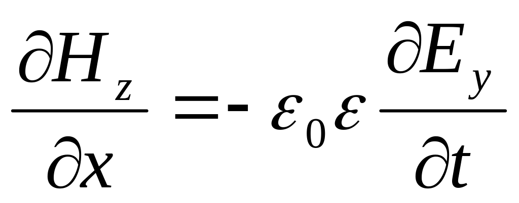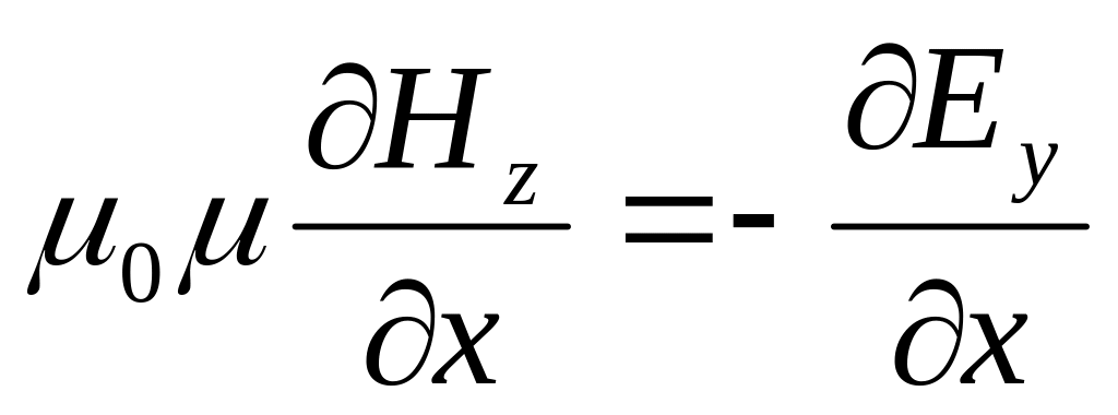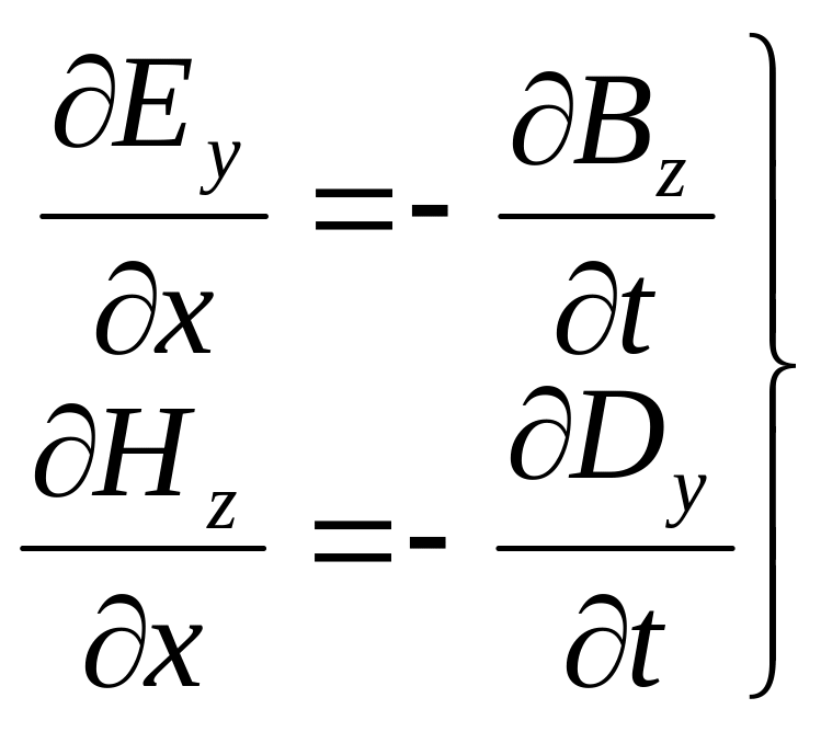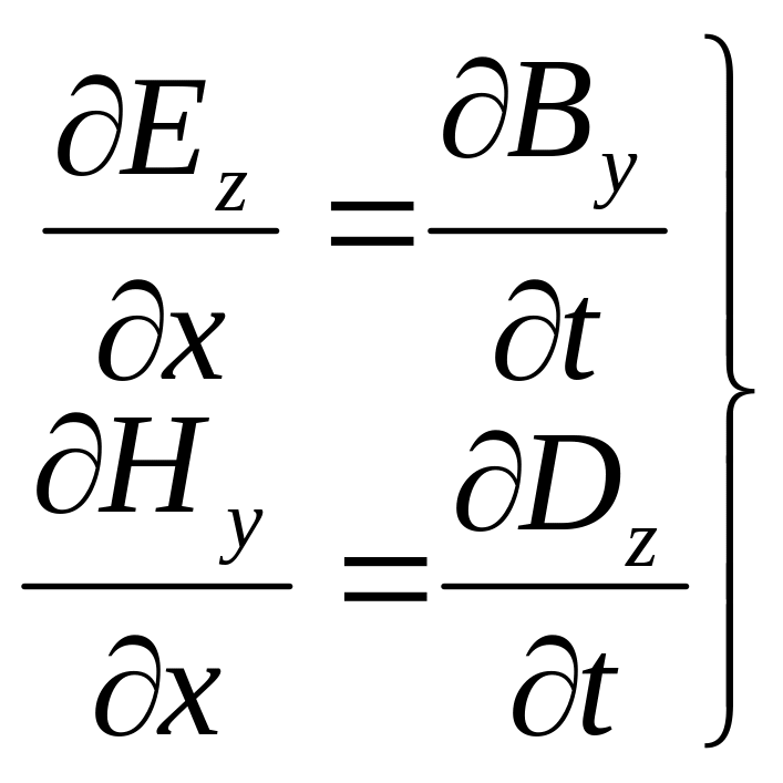 Оставшиеся четыре уравнения распадаются на две независимых системы уравнений. В одну из них входят y-компоненты электрического поля и z-компоненты магнитного поля, а в другую — z-составляющие электрического и y-составляющие магнитного поля: