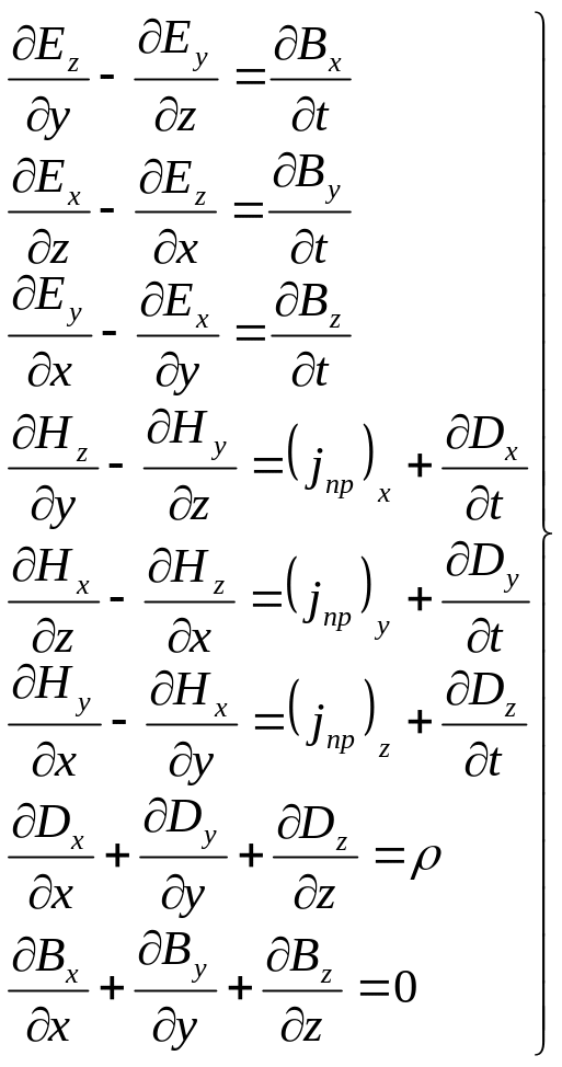 В координатной форме уравнения Максвелла (24.1) имеют вид