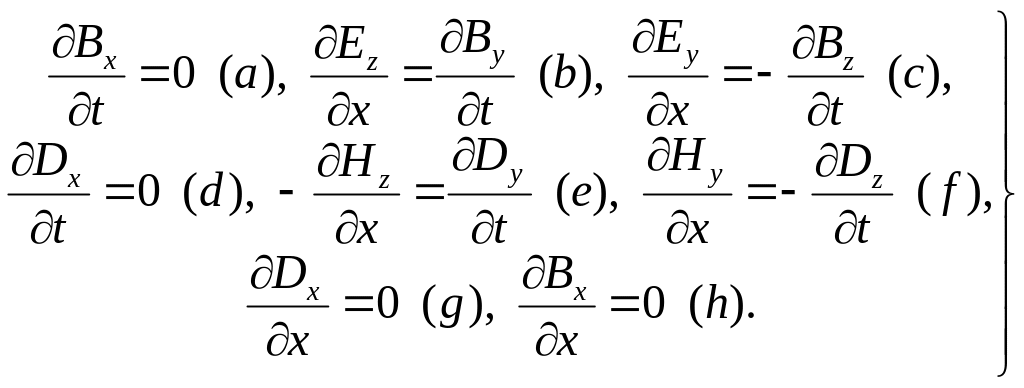Из уравнений (a), (d), (g) и (h) следует, что x-компоненты электромагнитного поля Bx и Dt не зависят от x и t, т.е. Bx(x,t)=const, Dx(x,t)=const.