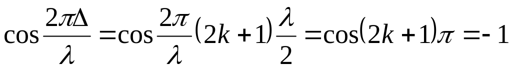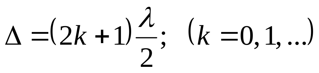 2. Оптическая разность хода равна нечетному числу полуволн: