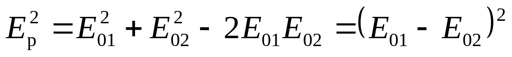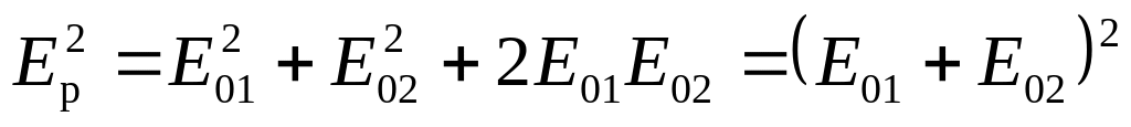 Из (25.8) видно, что результирующая амплитуда колебаний равна разности амплитуд, т.е. происходит взаимное ослабление амплитуд колебаний. В случае, если E01 = E02, происходит полное гашение, т.е. Ep = 0. Таким образом, условие (25.7) есть условие возникновения интерференционного минимума.