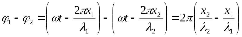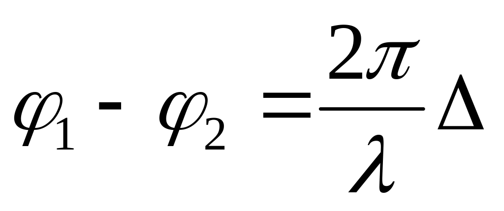 Разность = n2x2 – n1x1 называется оптической разностью хода. Таким образом, разность фаз