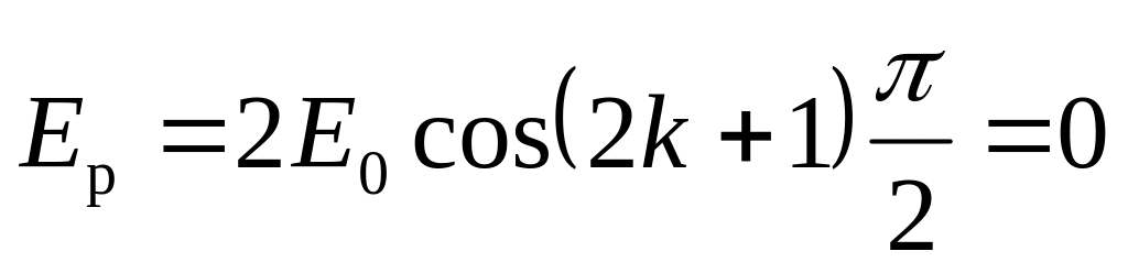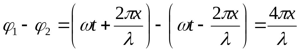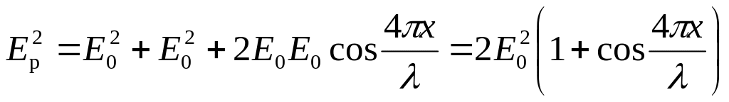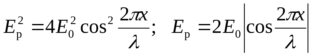 Результирующую амплитуду колебаний при наложении волн в точке пространства с координатой x найдем по формуле (21.24), заменив в ней разность фаз по (25.11) и положив A1 = A2 = E0. Имеем