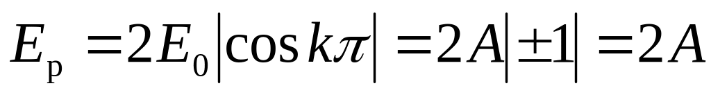 т.е. для точек удовлетворяющих условию (25.12), выполняется условие максимума — в этих точках результирующая амплитуда равна удвоенной амплитуде одной из волн. Эти точки называются пучностями. Координаты пучностей
