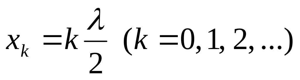 Расстояние между соседними пучностями равно половине длины волны: