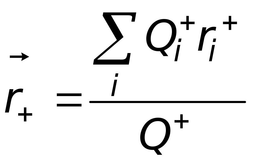 Заметим, что центр положительных зарядов определяется точно так же, как и цент масс материальных точек (формула (2.9)). Центр отрицательных зарядов определятся аналогично: