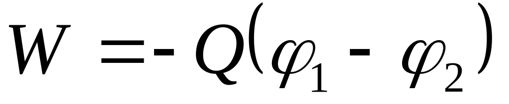 где W1=-Q, W2=Q – энергия зарядов -Q и +Q, находящихся в точках поля с потенциалами соответственно и на рис. 2.2 эквипотенциальные поверхности =const и =const (показаны пунктиром). Таким образом,