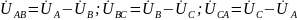Разность потенциалов между каждой парой линейных проводов называется линейным напряжением (UAB, UBC, UCA).