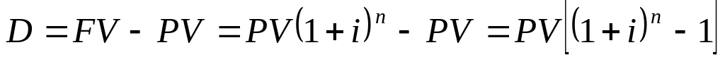 Предположим, что клиент положил в банк сумму, равную рублей под процентную ставку . Через один период наращения (например, через год) на его счете будет сумма, равная .