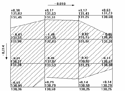 Пример картограммы земляных работ для наклонной площадки показан на рисунке 32.