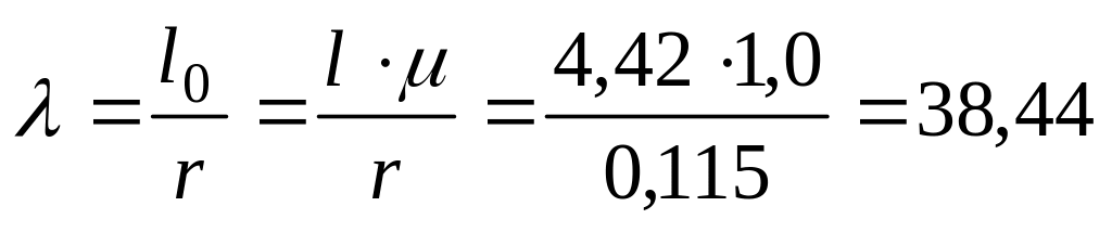 μ – коэффициент, μ = 1,0– шарнирно закрепленные концы с двух сторон