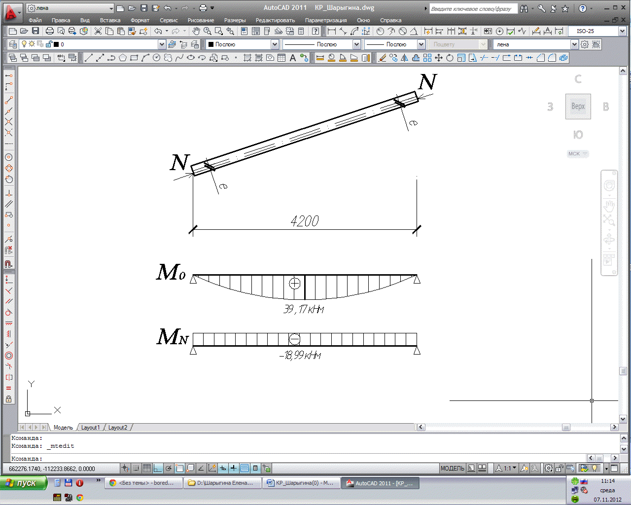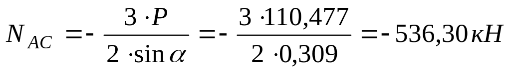 а)Расчетное усилие в опорной панели AC (снег на всем пролете):