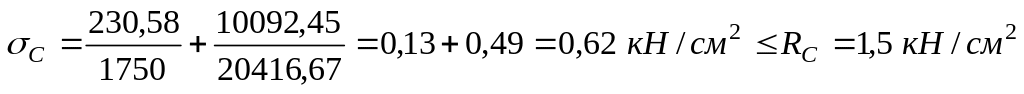 Rc – расчетное сопротивление сжатию. Rс = 1,5 кН/см2 ([5], п. 3.1. № 1, в)