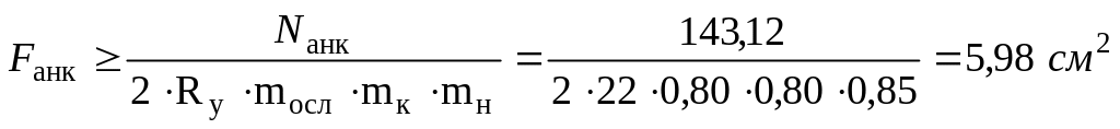 mн = 0,85 - коэффициент, учитывающий неравномерность работы двух анкеров