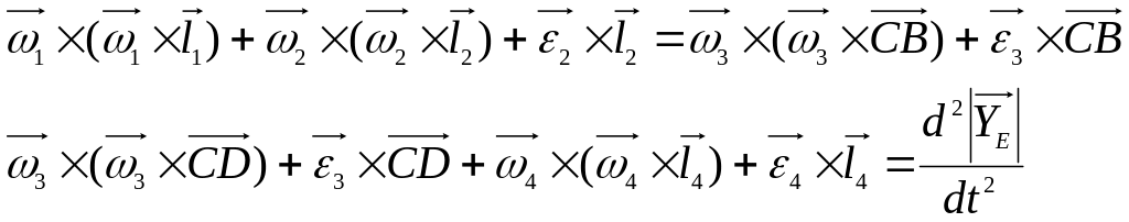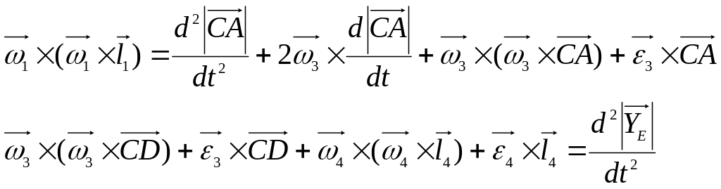 Путём дифференцирования уравнения дважды по q уравнения геометрического анализа, находятся аналоги скоростей и ускорений механизма.