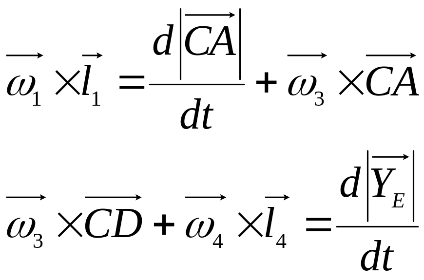 Для нахождения скоростей берётся производная по времени от каждого полученного векторного уравнения: