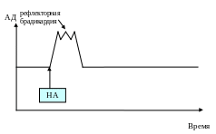 НА→α2→Gi→снижение активности аденилатциклазы→ снижение концентрации цАМФ→снижение концентрации Ca2+→снижение Ca-зависимого экзоцитоза НА