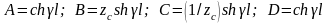 Выберите правильные формулы расчета коэффициентов четырехполюсника для линии с сосредоточенными параметрами:
