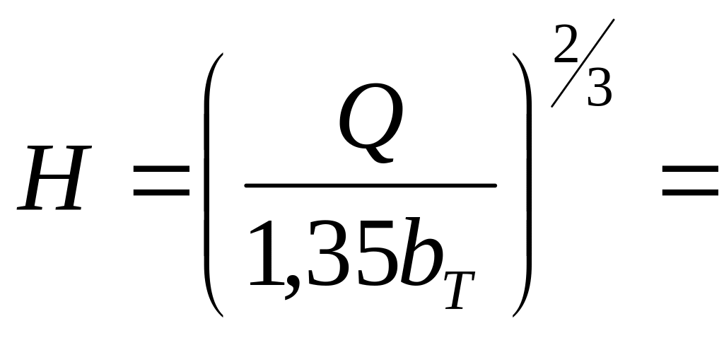 Висоту потоку, та швидкість визначаємо за формулами: