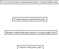2. Рассчитать процесс запуска механизма: асинхронный двигатель, магнитная муфта, нагрузка. Построить зависимости от времени скоростей ведущей и ведомой частей механизма.