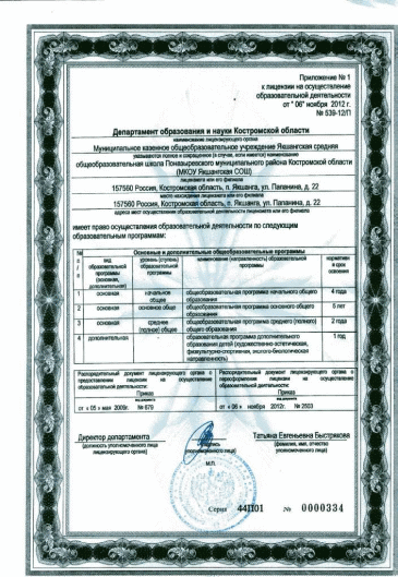 Лицензия на осуществление образовательной деятельности по указанным в приложении образовательным программам