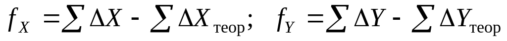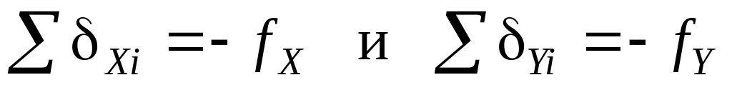 Разность между суммой вычисленных приращений координат и теоретической суммой называется линейной невязкой хода и обозначается fХ и fY. Уравнивание линейных измерений выполняется раздельно по осям Х и Y.