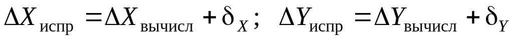 Поправки в приращения координат X и Y вычисляются по формулам с округлением до 0,01 м: