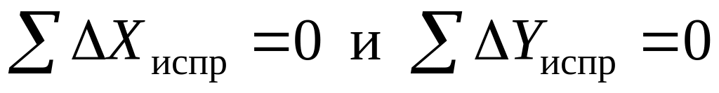 Контроль: сумма исправленных приращений в замкнутом теодолитном ходе должна равняться нулю, т.е. должно выполняться равенство: