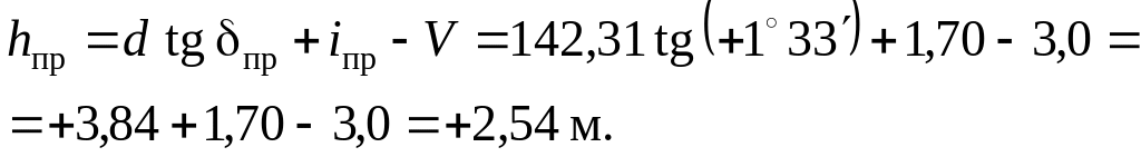 Превышения между точками теодолитного хода вычисляются с точностью два знака после запятой по формуле: